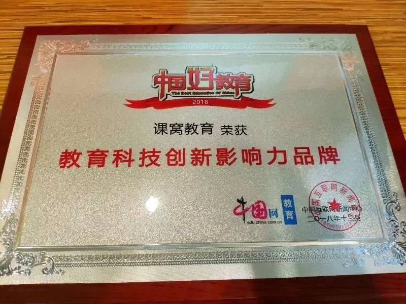 在由中国互联网新闻中心(中国网)主办、中国网教育频道承办的2018年“中国好教育”盛典中,课窝教育荣获了教育科技创新影响力品牌!
