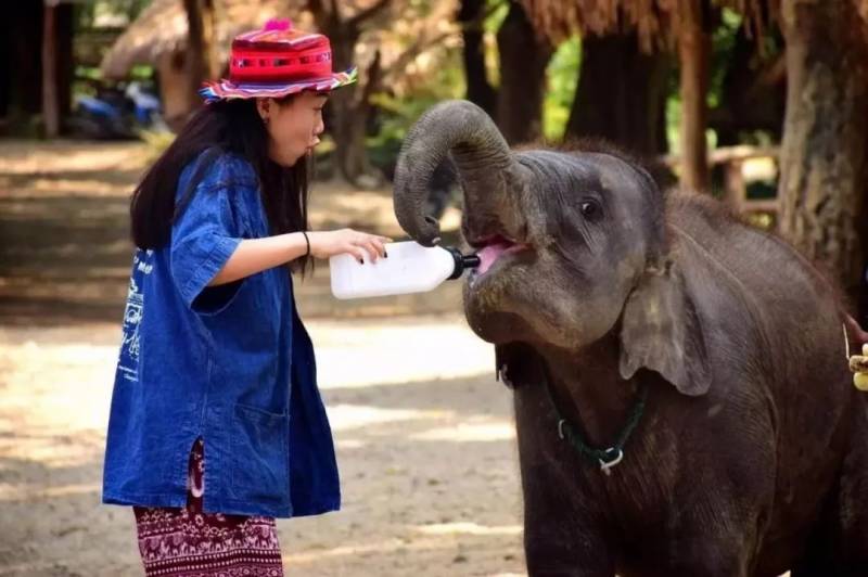 如果是刚出生的小萌象,还需要端著奶瓶为其喂奶。为了和这些家伙们更好地沟通与交流,你通常还需要学习“象语”,并掌握一些训养大象的基本技能。