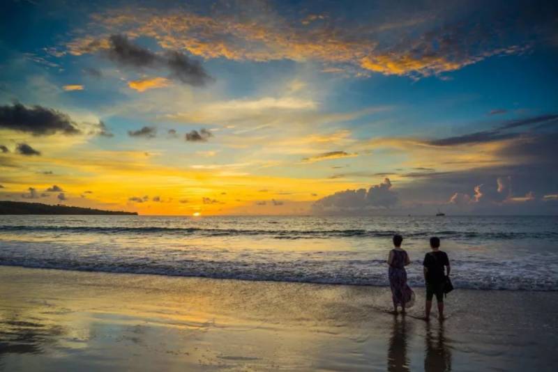 或者去金巴兰的狭长海岸观看一场全球最美的海上落日,伴随着彩霞享用一顿海鲜烛光晚餐;你还可以站在情人崖的断崖边,将蓝色琥珀般的海洋尽收眼底,惬意无暇。