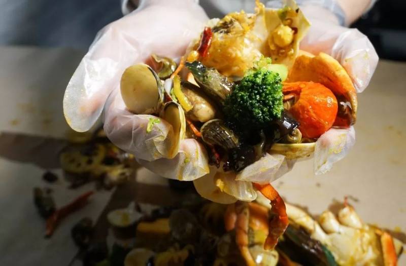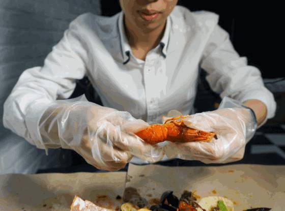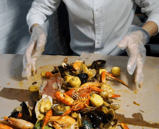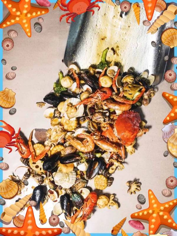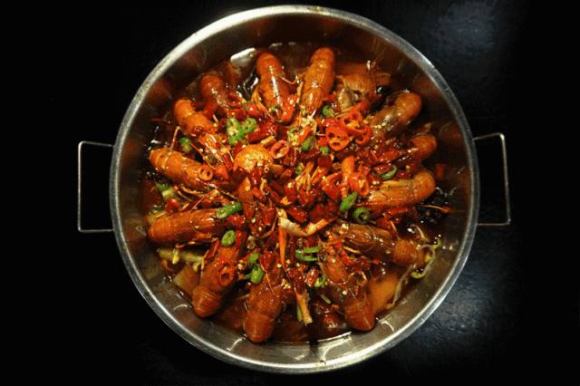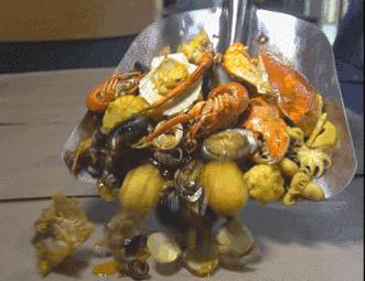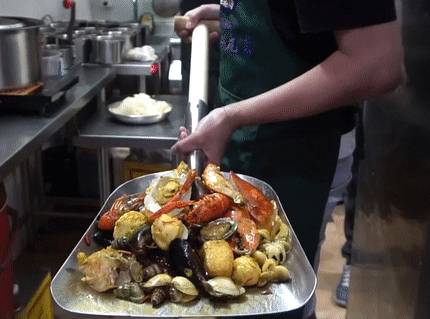 只听见海鲜在锅里“稀里哗啦”的清脆声响。
