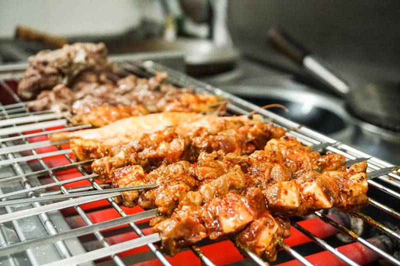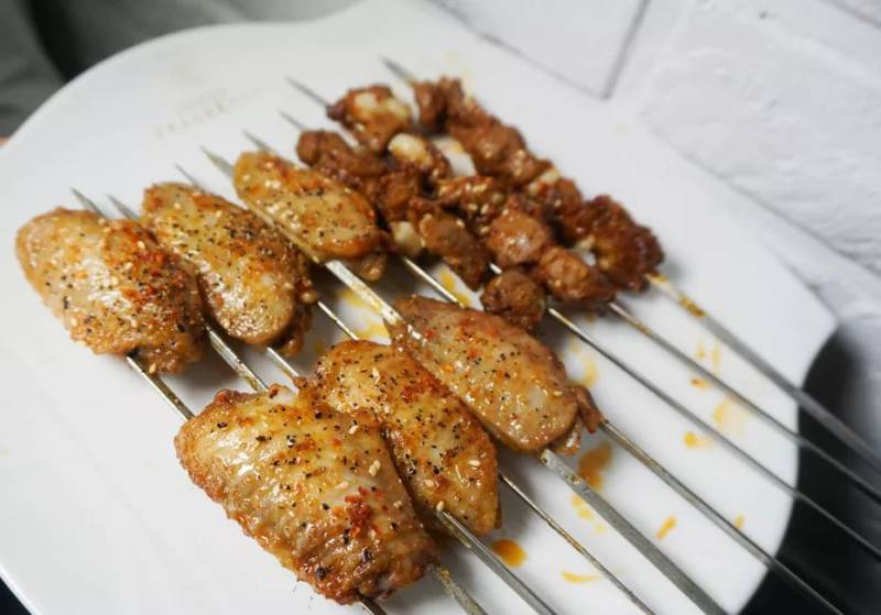 比方说:烤大蒜、炭烤手撕猪心、烤猪脊骨。
