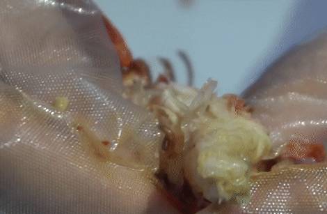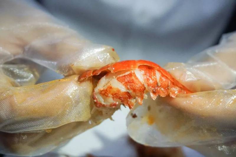 掰开坚硬的虾壳,鲜嫩的虾肉就露了出来!