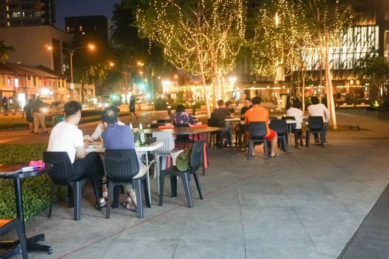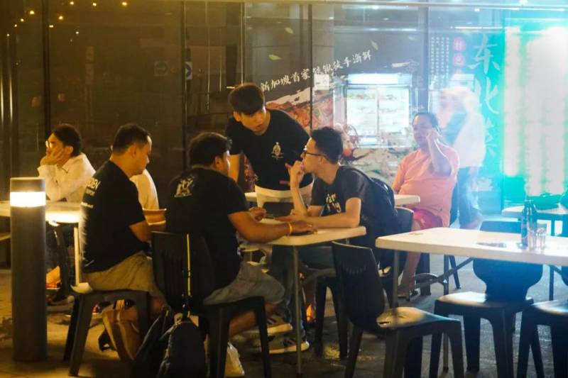 喝着啤酒,吃着海鲜、烧烤、龙虾,
