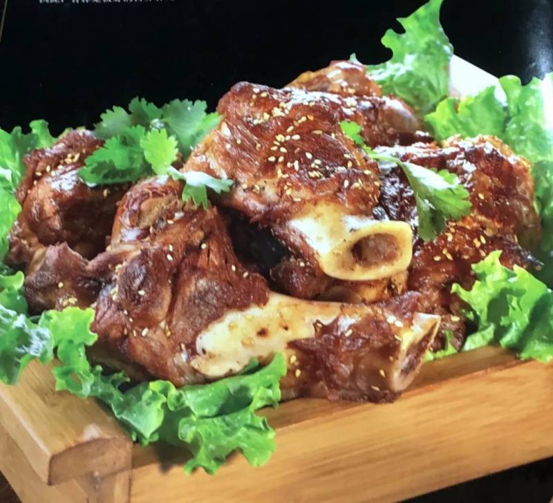 盐焗大虾、烤猪棒骨、蜜汁梅肉