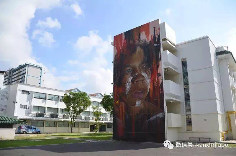 这张巨型涂鸦来头不小,画的是一名澳大利亚土著男孩,来自艺术家Matt Adnate。2015年为了庆祝澳洲和新加坡建交50周年,Adnate在新加坡共画了三幅画,另外两幅分别在新加坡澳大利亚国际学校和金文泰区的建筑外墙。