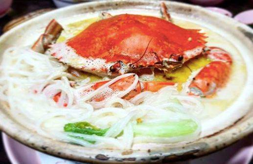 裹着香浓汤汁的螃蟹,蘸上刚炸好的黄金小馒头,再配上它们家的招牌沙煲螃蟹米粉非常完美。