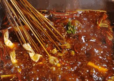 放在锅里,一大捆儿的串串,看着就很有食欲