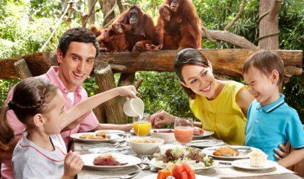 新加坡动物园的餐厅为你准备了丰盛的自助餐,里面有西方和新加坡的美食,你置身于野外,周围有300多种动物,包括奇异的白虎和红毛猩猩。