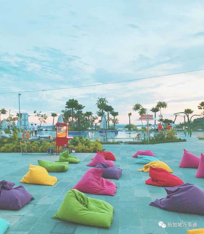 色彩缤纷的懒人沙发和可爱感十足的爆米花机,看来有一场浪漫的海滩电影等着我们开场