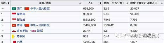 新加坡人口密度排名,仅次于国土面积第二小的国家摩纳哥。