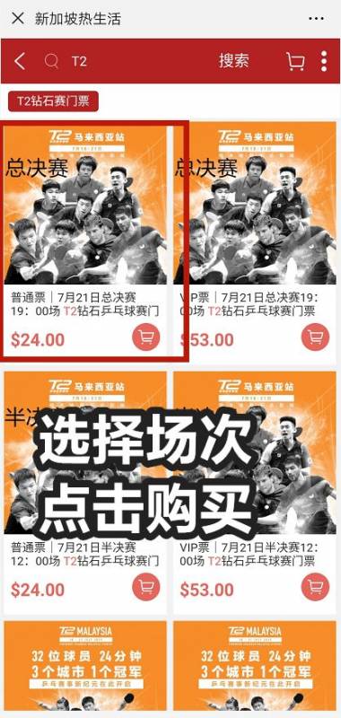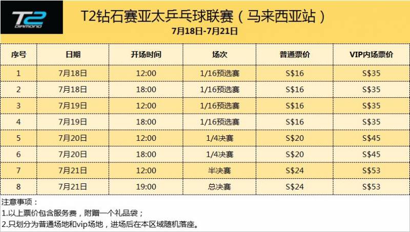 (*赛程安排及门票价格,邮费1新币)