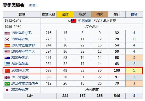 奥运奖牌数排名常年1234!