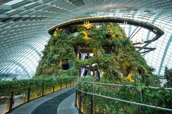 云雾林是滨海湾花园的一大特色。在这个封闭的空间内,有一座 35 米高的苍翠云山,烟雾缭绕,宛如仙境,全球最高的室内瀑布飞流直下。您将发现云山种满了来自最高海拔 2000 米热带高原的植物。这里更像宫崎骏天空之城的原型