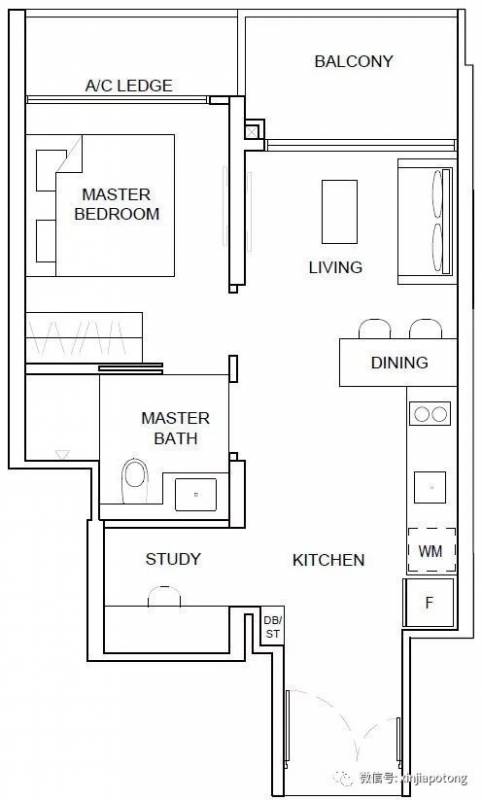1+书房户型,47平方米/506平方英尺,带一个小书房,价格96.9万起