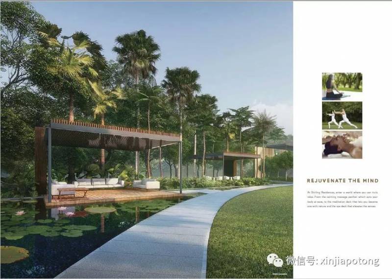 由于项目占地面积大,多达21100平方米,采用地面挑高的设计,这样保证80%地面都可以用来做小区配套设施、绿化等,多达80多种公寓配套设施供业主使用,拥有多达7个泳池和热带雨林景观。一共有三栋楼,所有单位都是南北向,采用平行的建筑设计,无呼吸阻挡,视野开阔,180度景观,有四种不同的景观,中央商业区景观,南部山脊景观,海景,武吉知马景观。