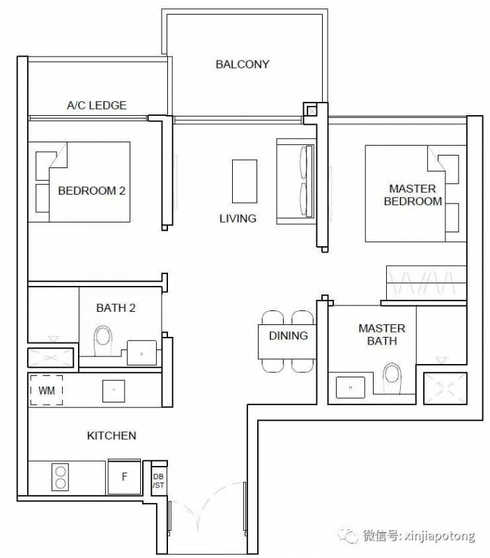 2房普通型,面积介于624~872英尺,有三种不同户型,带封闭式厨房,价格111.2万起
