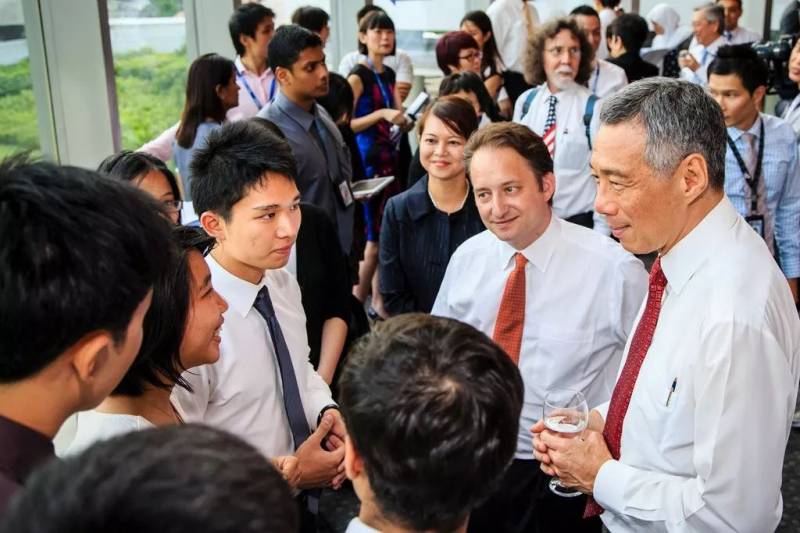 新加坡总理李显龙(右)与耶鲁-新加坡国立大学学院校长伯里克利·刘易斯(中)