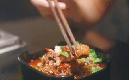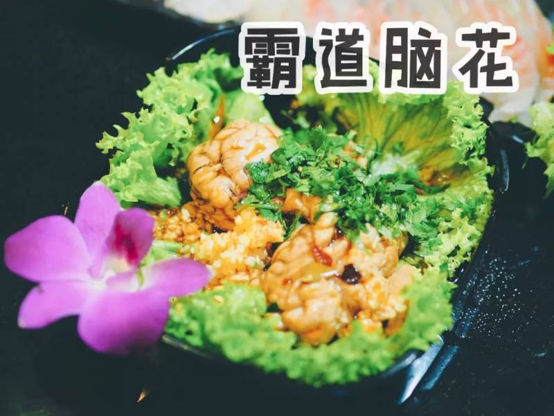 夹起一块肉点上辣椒面,把外皮酥脆、肉质饱满有香料味儿的酥肉放入口中,的确是种享受! 霸道脑花
