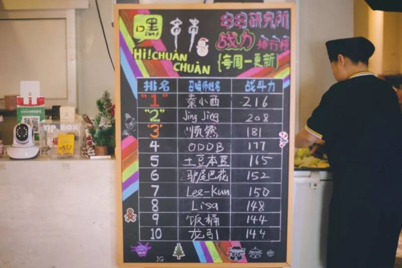 感谢大家的支持,11月“串串英雄榜”上共有10组英雄留下姓名。目前的记录是一桌4个人吃掉了216串!