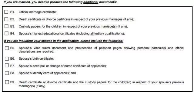 如果你是已婚人士,并且打算携带配偶申请永居,需要额外提供以下这些文件(上面的A1 - A10文件也需要)