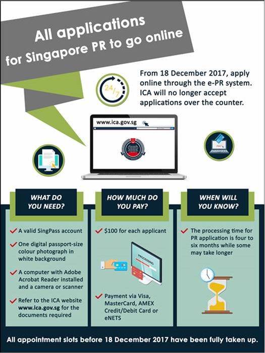 目前预约PR,也可以通过登录Singpass,网上递交。