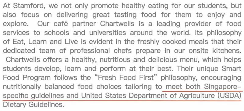 新加坡国际学校的餐食不仅要满足新加坡相关条例,也要满足相应国家的食品安全要求。学生的餐食安全相当于拥有了两份保障。