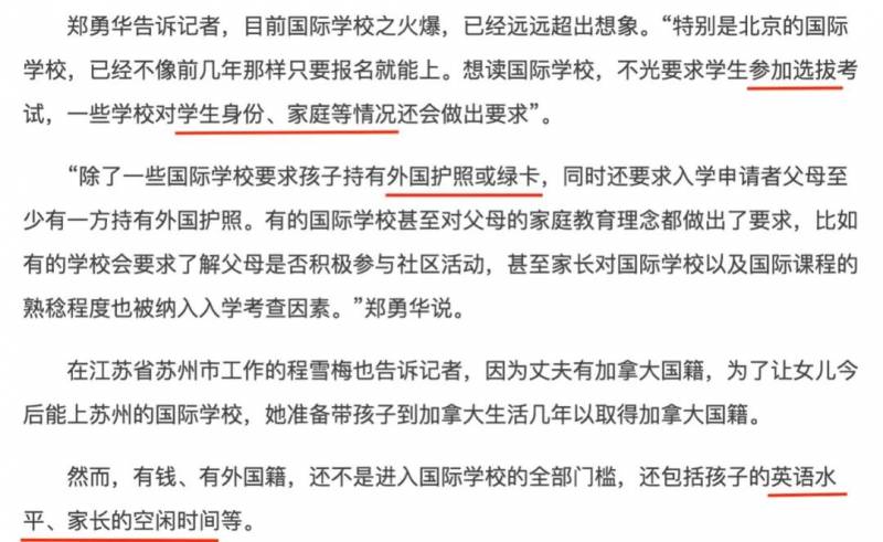 想读国际学校,不光要求学生参加选拔考试,一些学校门槛更是五花八门,对学生身份、家庭等情况还会做出要求。