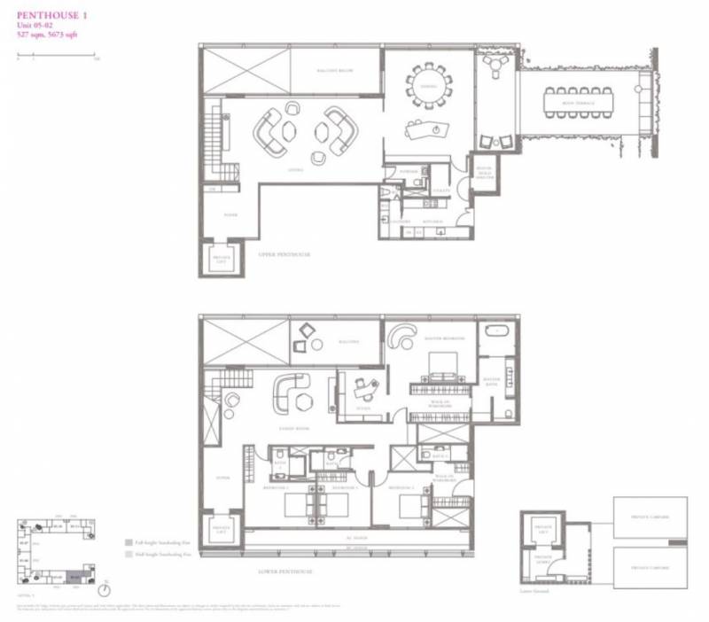 阁楼单元,套内面积527平方米(5,673平方尺),这也是一个超大气的设计,并配备私人电梯。分上下两层。底层用于住宿和家庭娱乐,顶层是厨房、客厅和餐厅。干湿厨房完全分开,厨房相当宽敞,还配备储藏间和卫生间。和4卧室单元一样,主人房还配备一间步入式衣柜,其余三间房均配备一个内置衣橱,所有房间均配备独立卫生间,主人房配备大型浴缸。住在阁楼单元,可欣赏全方位景色,在迷人的风景中看着天上星星就餐。这样的户型很适合有多个孩子或与父母同住的家庭,或出租给相应的高端人士家庭。