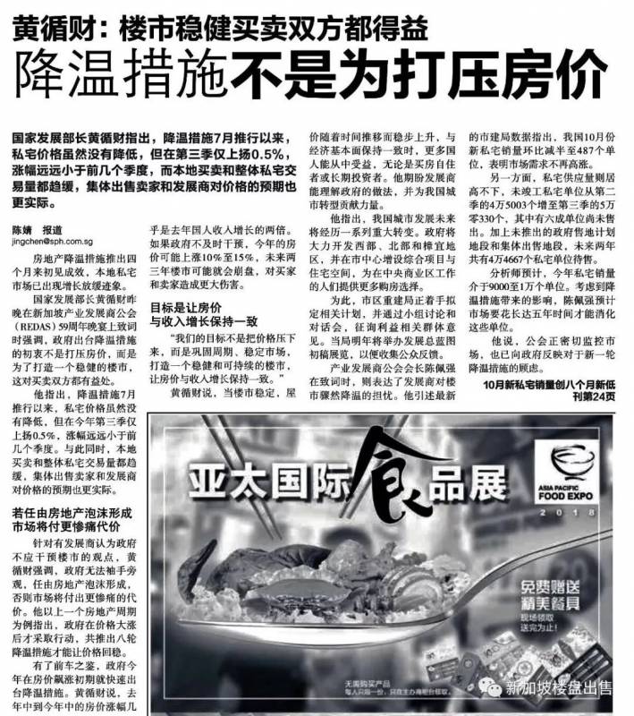 为确保房价涨幅符合经济基本面,政府今年7月6日实施新房地产条例,提高额外买方印花税(ABSD)和收紧贷款与估值比率顶限(LTV)。其中,外国买家的额外买方印花税从15%升至20%。