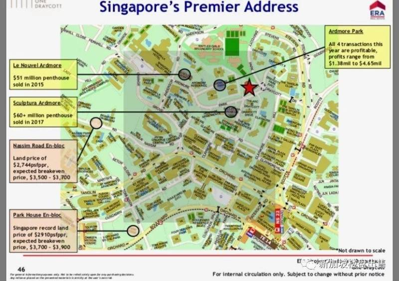 项目的对面是雅茂园(Ardmore Park),2018年有四个交易,价格从$138 万元到$465 万元.