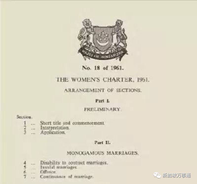 1961年9月15日,新加坡开始施行《妇女宪章》 (Women’s charter),主要目的就是保护妇女和孩童的权益。