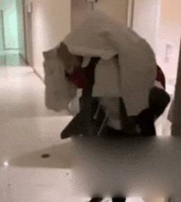 突然!一名男性背着一个头顶外套的女性,急匆匆地从病房中跑出,火速跑出医院,身后记者们先是一愣,接着全都意识到了什么,连忙跟上男子。