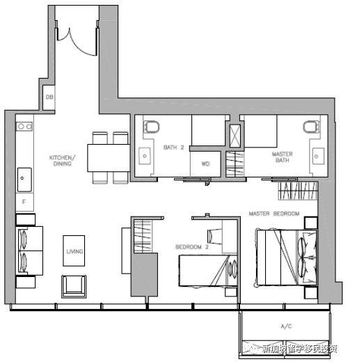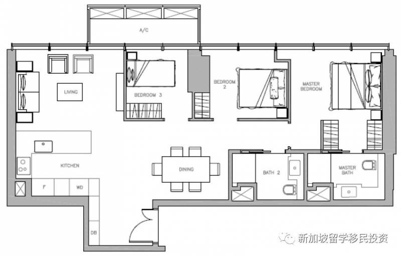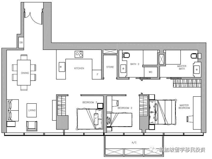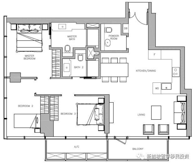 A3-5户型 3室 1098平方英尺 / 102平方米