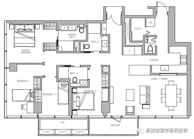 C4-1户型 4室 1991平方英尺 / 185平方米