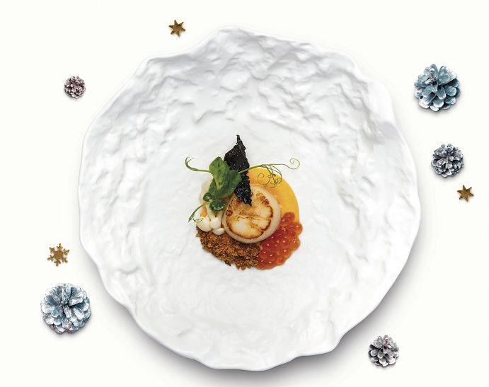 -香草煎北海道扇贝,配上马铃薯、海胆酱