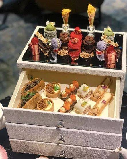 这个像首饰盒一样的屉子,如果不打开,你会想到里面竟然装着各式小点心吗?这种类型的下午茶店,简直是让少女们没有一点抵抗力。