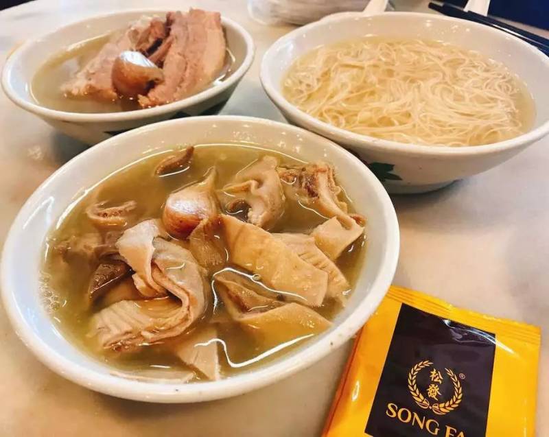 招牌肉骨茶也基本是每桌必点。这肉骨茶光看色面谈不上有多诱人,夹起一块浸没在茶汤里的肉骨送入口中,肉骨中保留着胡椒的浓烈,再喝一口金黄色的茶汤,暖意瞬间在全身蔓延开来。另外他们家的米线也非常值得一试,完好地吸收茶汤的烫、肉骨的鲜,胡椒的冲,入口的瞬间仿佛是醐醍灌顶一般,不似芥末的辛辣,这种对于味蕾稍显缓和的点拨,可谓余味缭绕,令人沉迷。