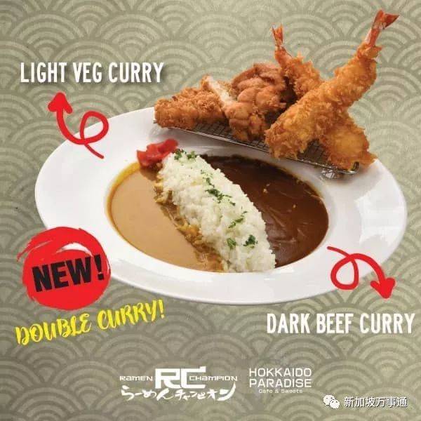 日式咖喱配上炸虾、炸鸡,这份高卡路里的诱惑每人能抵挡!现在Ramen Champion出的这份新品,你还可以品尝到两种美味的咖喱,简直是大满足~