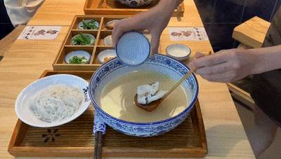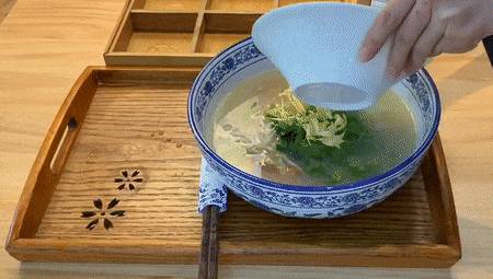 高汤中的白沫需要不断地打捞,才能保证汤料的色泽清亮,口感香而不腻。