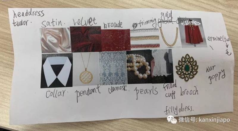 老师看出了我们的惆怅,就细细讲了各种布料的区别,比如satin(绸缎)、velvet(丝绒)、brocade(锦缎)……