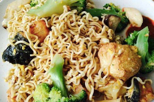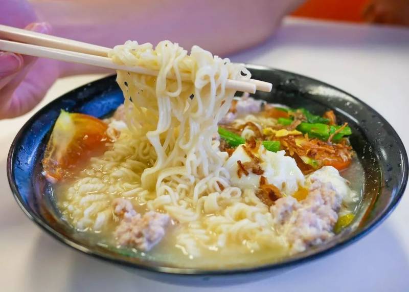 这家档口可以自选搭配,有很多蔬菜、肉类的选择。虽然只是一碗方便面,但是却是当之无愧的“豪华版”。多种配菜营养丰富,喜欢吃辣的小伙伴也可以选择辣汤。