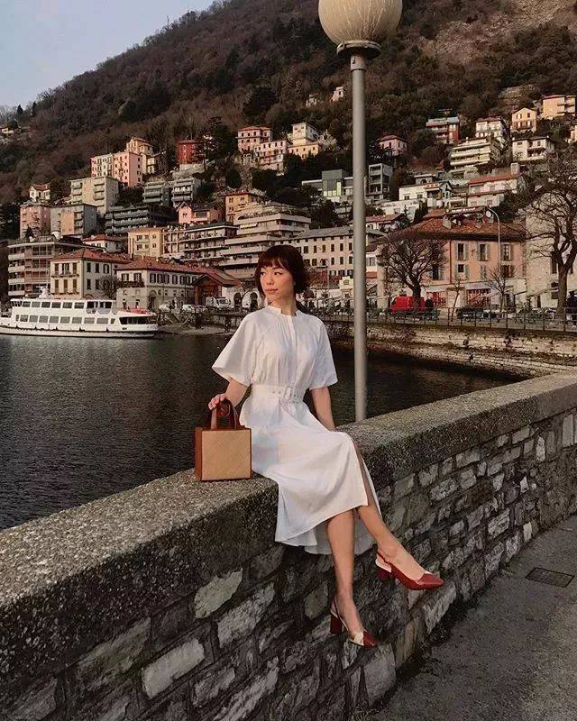 她夏天旅行穿搭更加亮眼,收藏起来旅行时可以用起来!白色的连衣裙显得非常干净,简约大方。