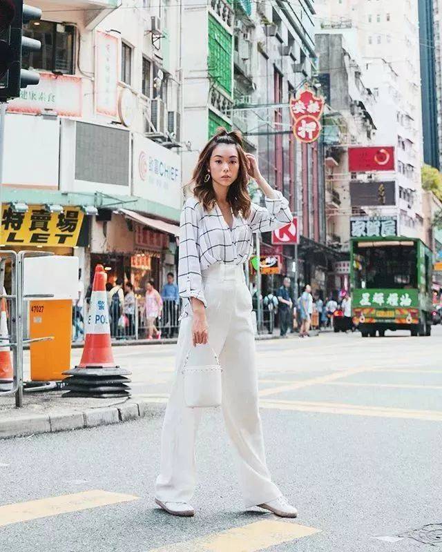 人人都爱的阔腿裤造型来啦,高腰+刚遮住脚背的款式,显高没商量。