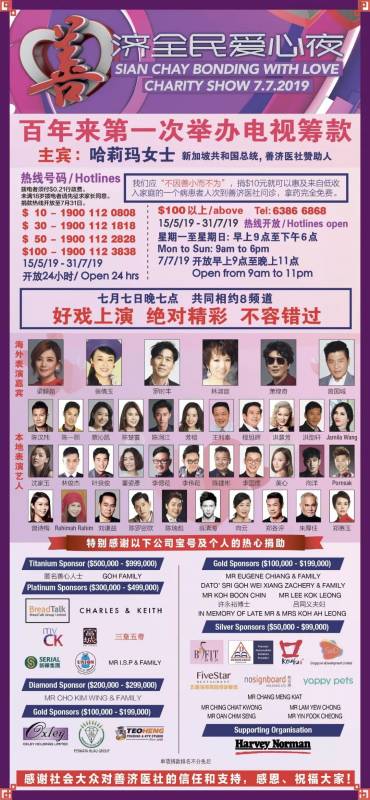期待社会各界善心人士协助善济,再拓展医社为社会大众服务宗旨,期待大家一起共襄善举,感恩!诚邀社会大众及电视机前的您和家人参与慈善爱心夜,观看精彩的表演,度过愉快的夜晚,与爱同行,光明璀璨!