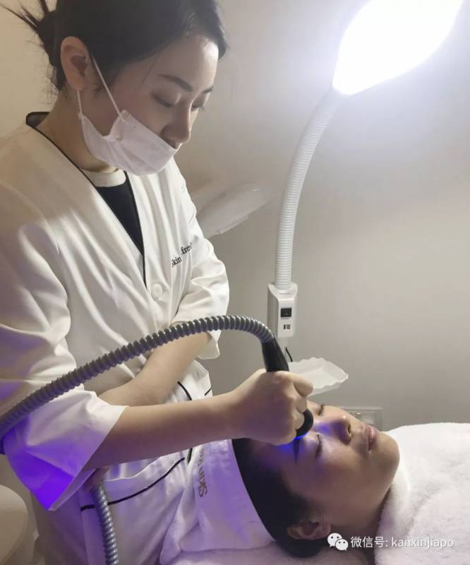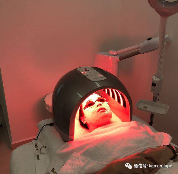 美容师会根据个人肤质情况,调不同颜色的光波。蓝色的杀菌去痘痘,红色再生胶原蛋白修复,黄色是淡斑,绿色针对敏感肌。