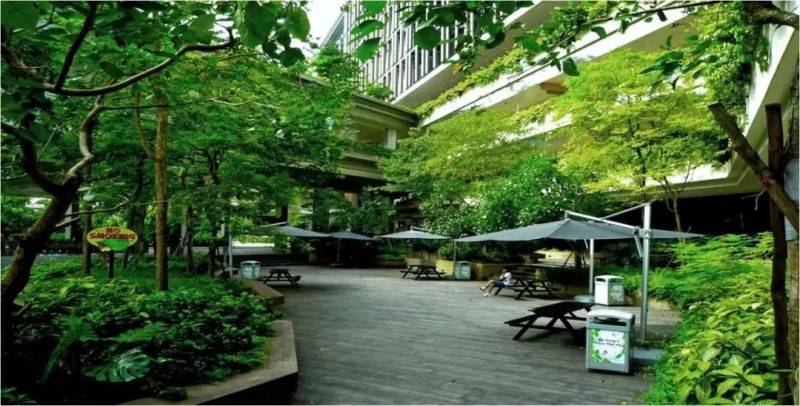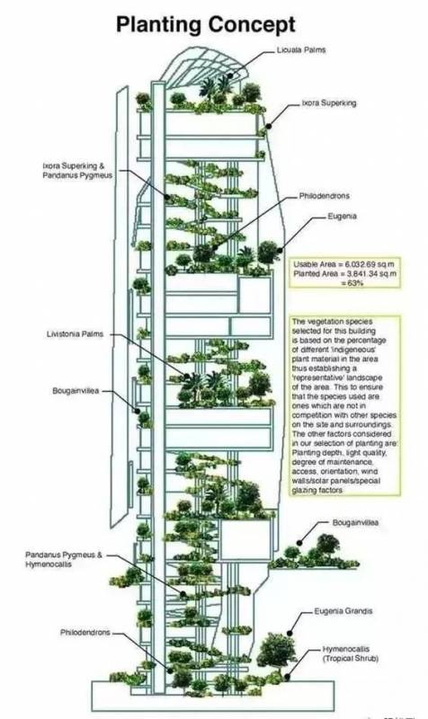 它整体的绿色容积率高达1100%,层层而上,除了带给客人以视觉享受,并在建筑中划分为无数空中花园,为喧嚣的环境留出一片休闲娱乐的场所。