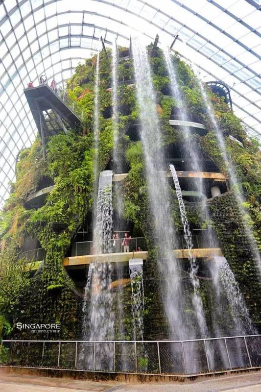 这个公园中最让人印象深刻的要素是一些高25米-50米的"擎天大树"(Supertrees),上面成长著垂直花园,攀缘植物,附生植物还有蕨类植物成长在上面。