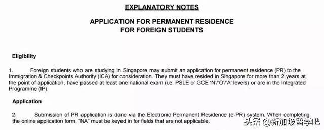 3.新加坡学校的在读学生,并至少在新加坡居住两年以上,同时至少通过新加坡的一项国家级考试,如PSLE,新加坡-剑桥GCEN/O/A水准,IP (Integrated Programme)课程等。这是新加坡移民厅2017年末给予在籍学生申请PR的新政策。