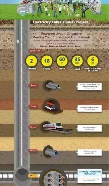 新加坡地下也承担了相当重要的分流作用。新加坡已被挖到了地下80米。