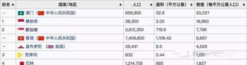 新加坡人口密度排名,仅次于国土面积第二小的国家摩纳哥。